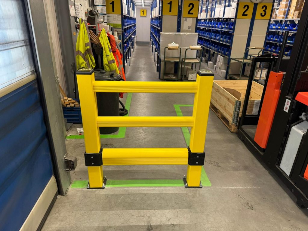 Voor dit magazijn heeft Floor Signing aanrijbeveiliging geplaatst om looppaden en verkeersroutes duidelijk van elkaar te scheiden. Door strategisch geplaatste beschermbeugels en duidelijke afbakening van werkzones wordt de veiligheid voor voetgangers vergroot en het risico op aanrijdingen met intern transport zoals heftrucks verminderd.