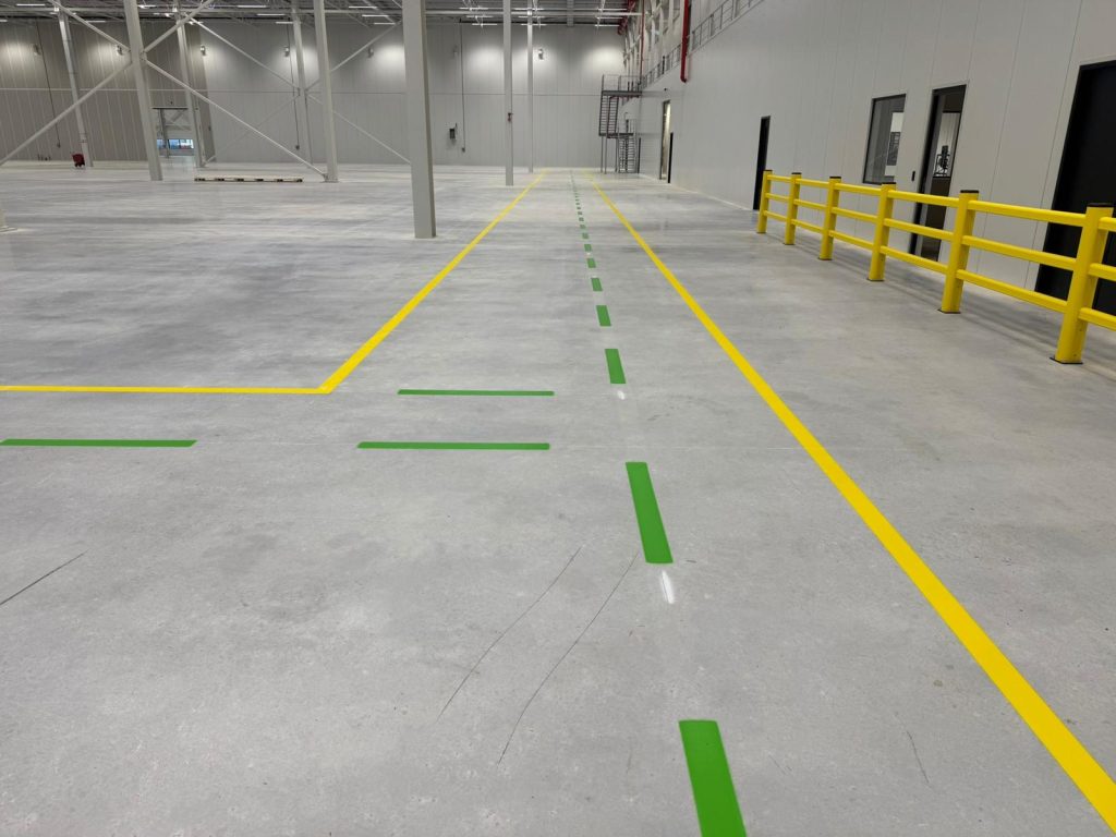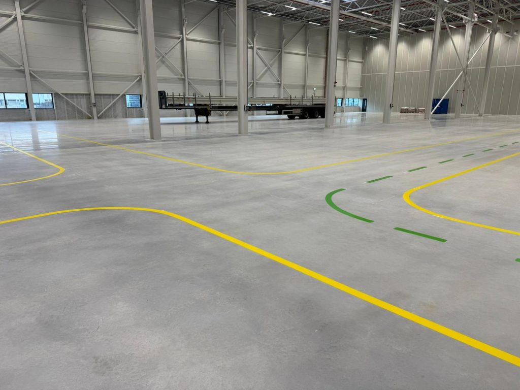 Voor dit logistieke centrum heeft Floor Signing duidelijke rijroutes en veiligheidsmarkeringen aangebracht. De belijning zorgt voor een efficiënte verkeersstroom van intern transport en een duidelijke scheiding tussen rijroutes, werkzones en looppaden.